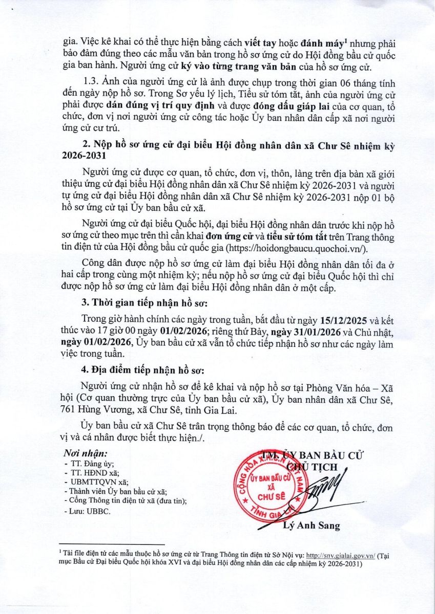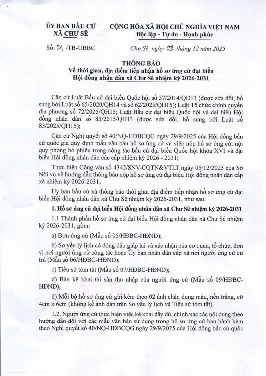 Thứ tư, 10/12/2025 | 10:54 A- A A+ | Thông báo về thời gian, địa điểm tiếp nhận hồ sơ ứng cử đại biểu HĐND xã Chư Sê, nhiệm kỳ 2026-2031. Chia sẻ Đọc bài Lưu Tập tin đính kèm Trình duyệt không hỗ trợ iframe.