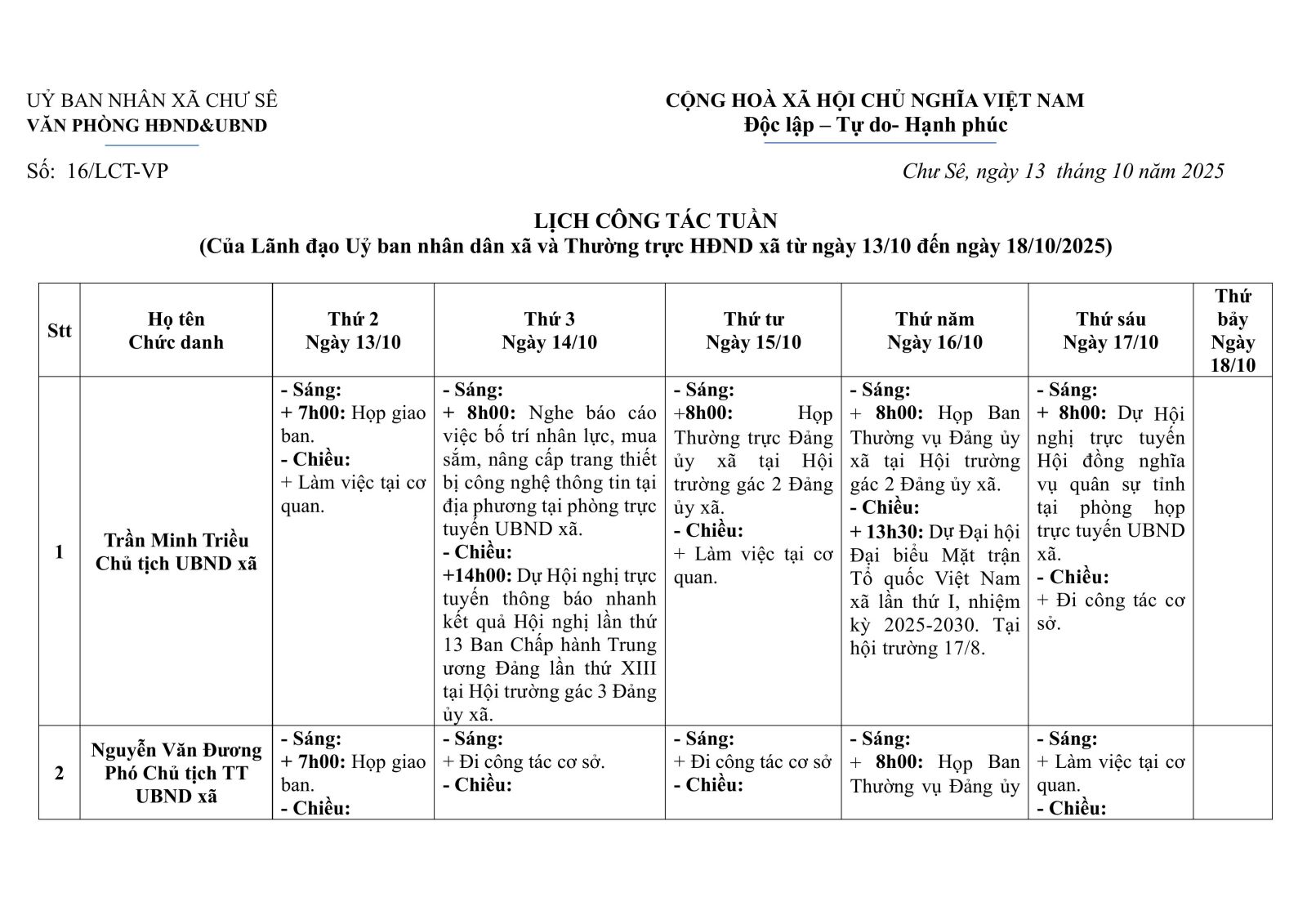Thứ hai, 13/10/2025 | 11:12 A- A A+ | Lịch công tác tuần (13/10/2025 - 18/10/2025) Chia sẻ Đọc bài Lưu