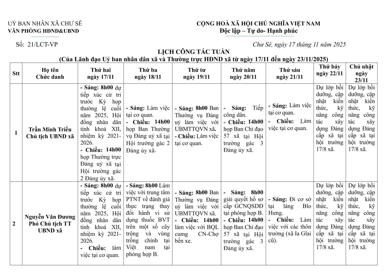 Lịch công tác tuần 17/11/2025 - 23/11/2025