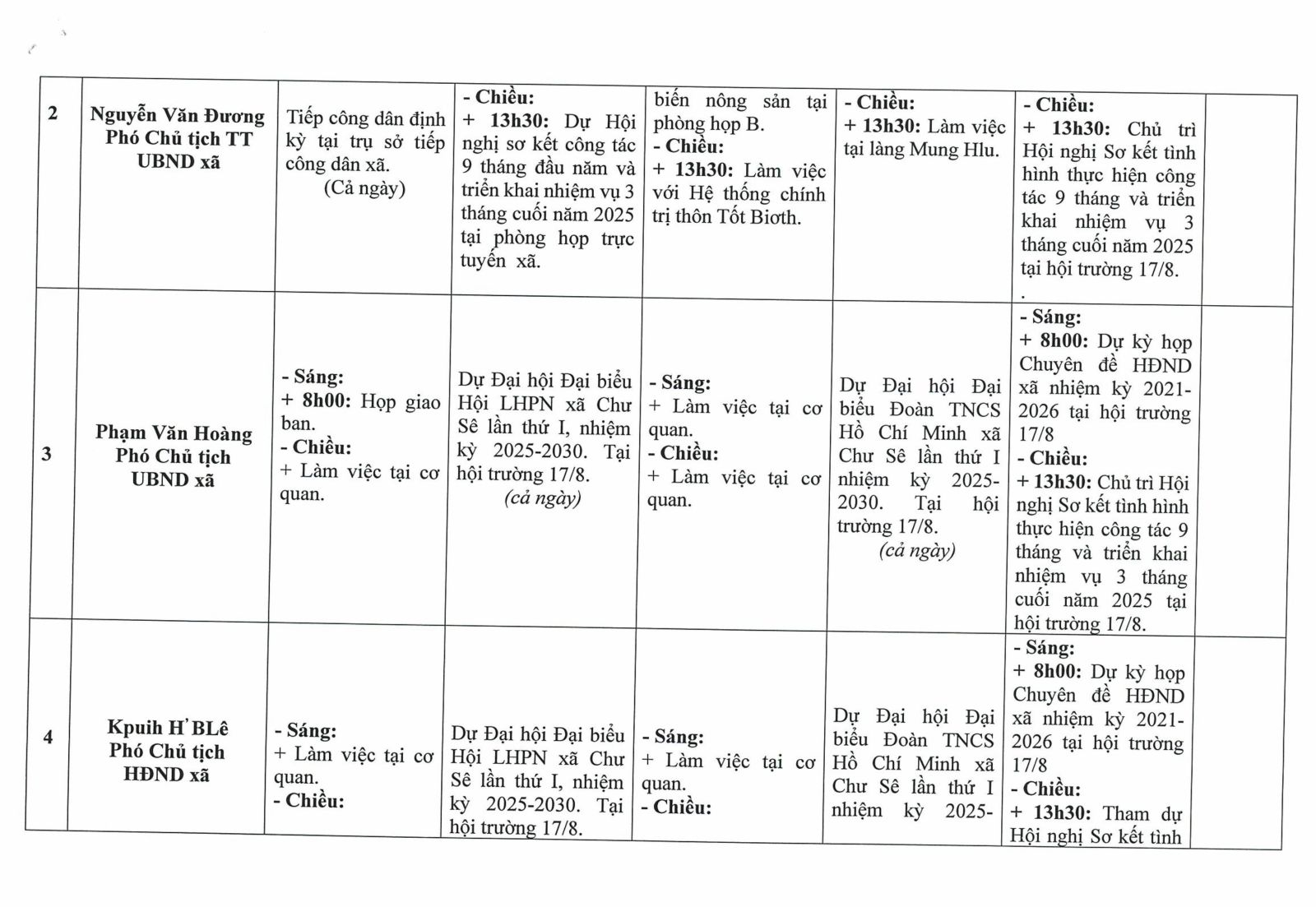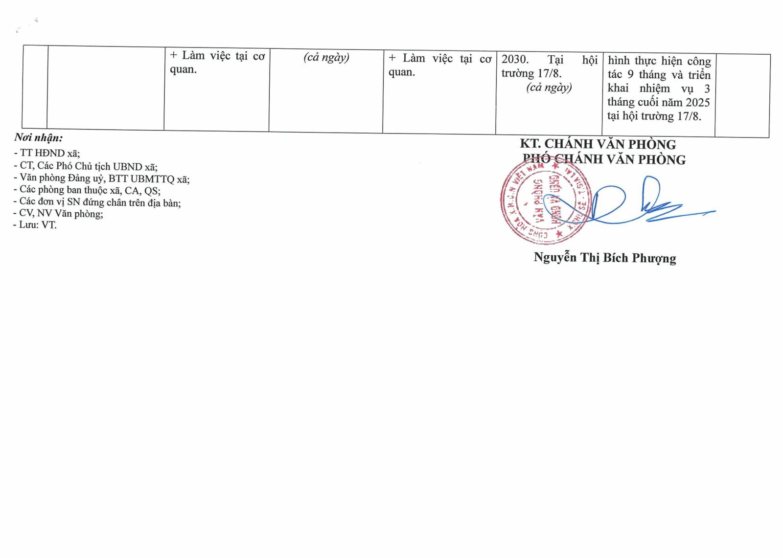Lịch công tác tuần (Từ ngày 29/9 đến ngày 04/10/2025)