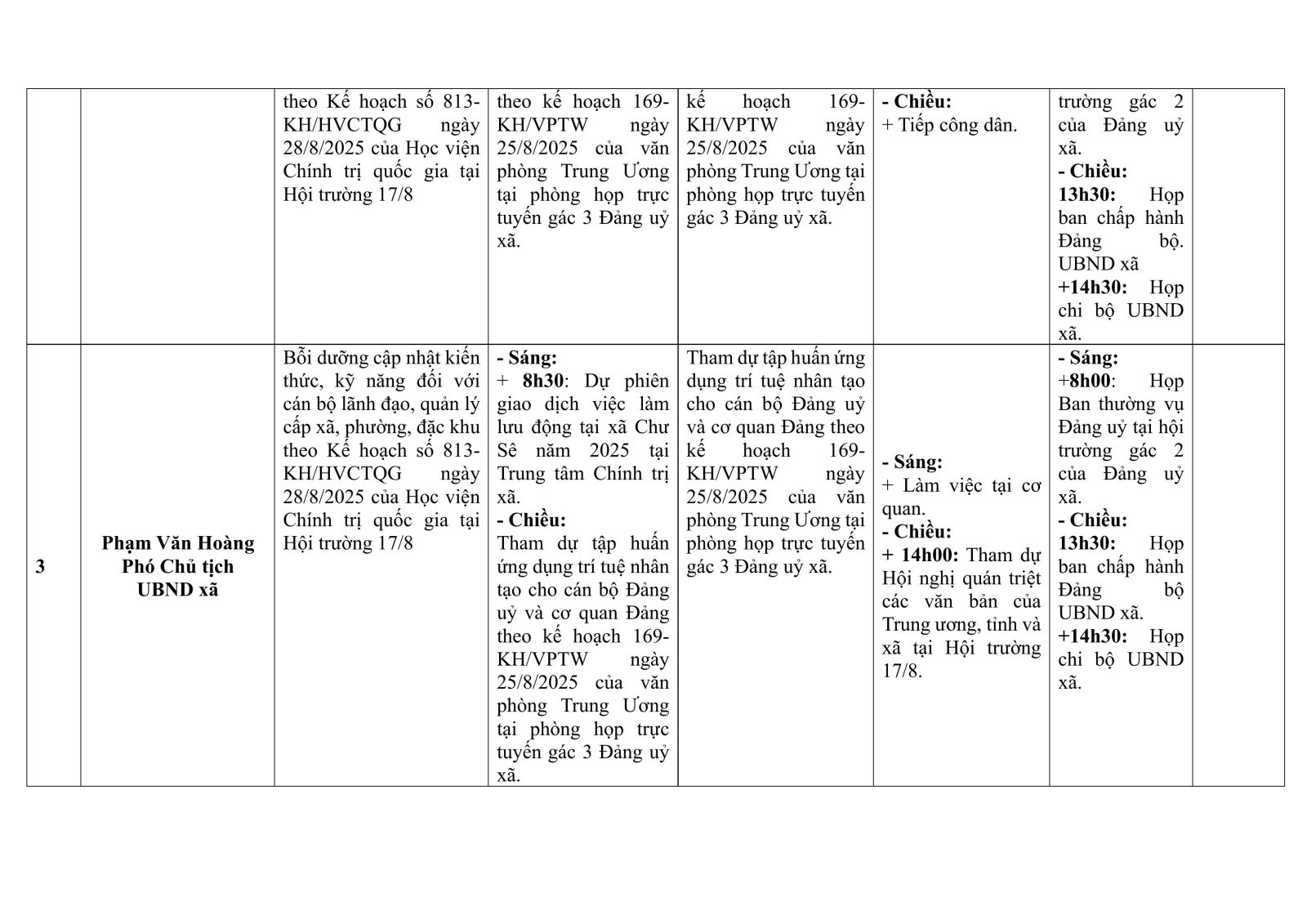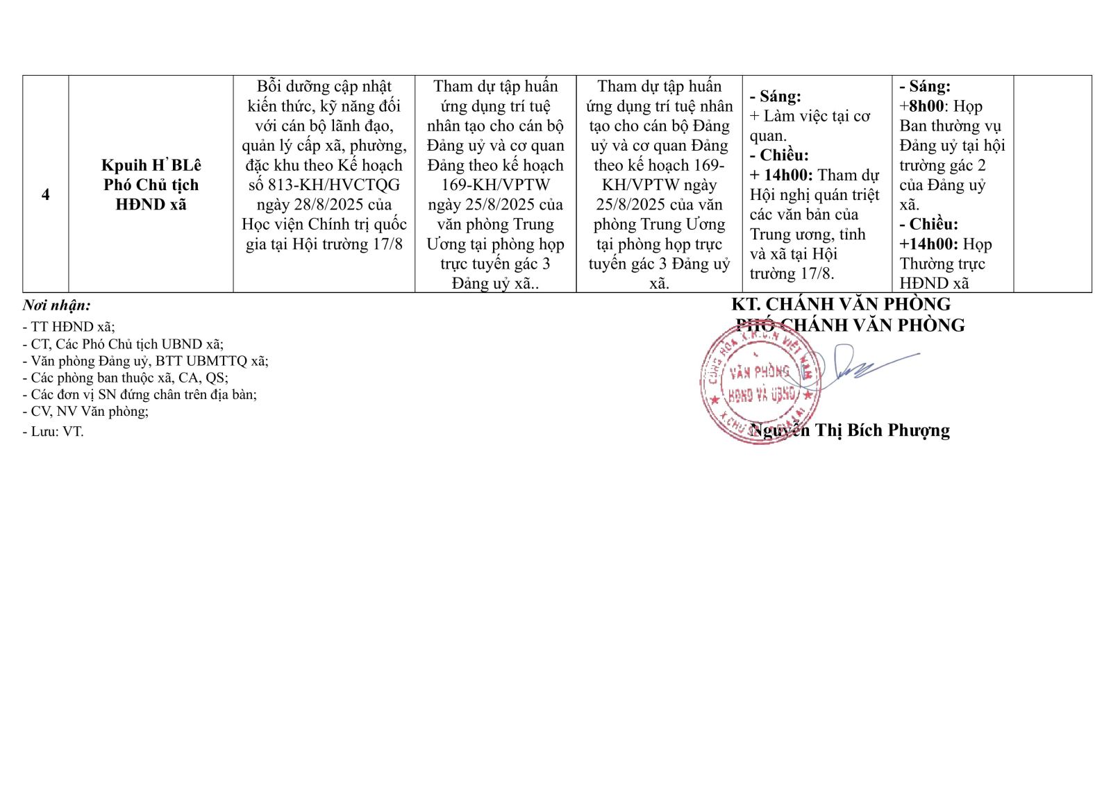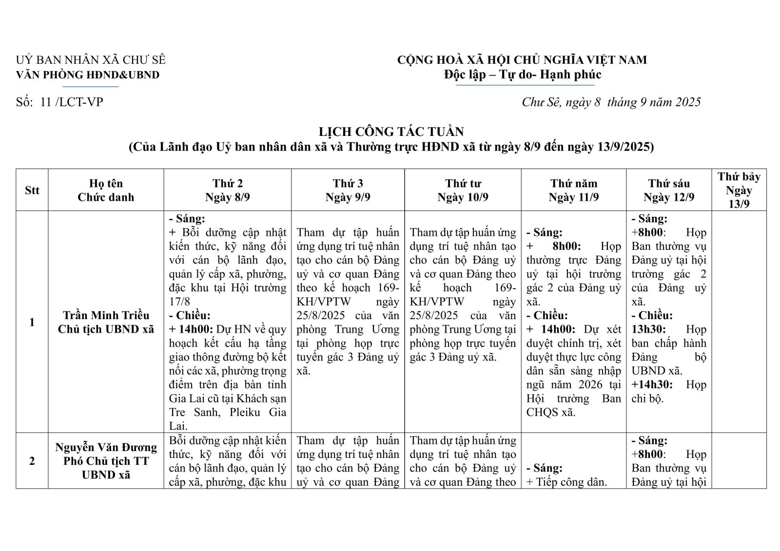 Lịch công tác tuần 8/9/2025 - 13/9/2025