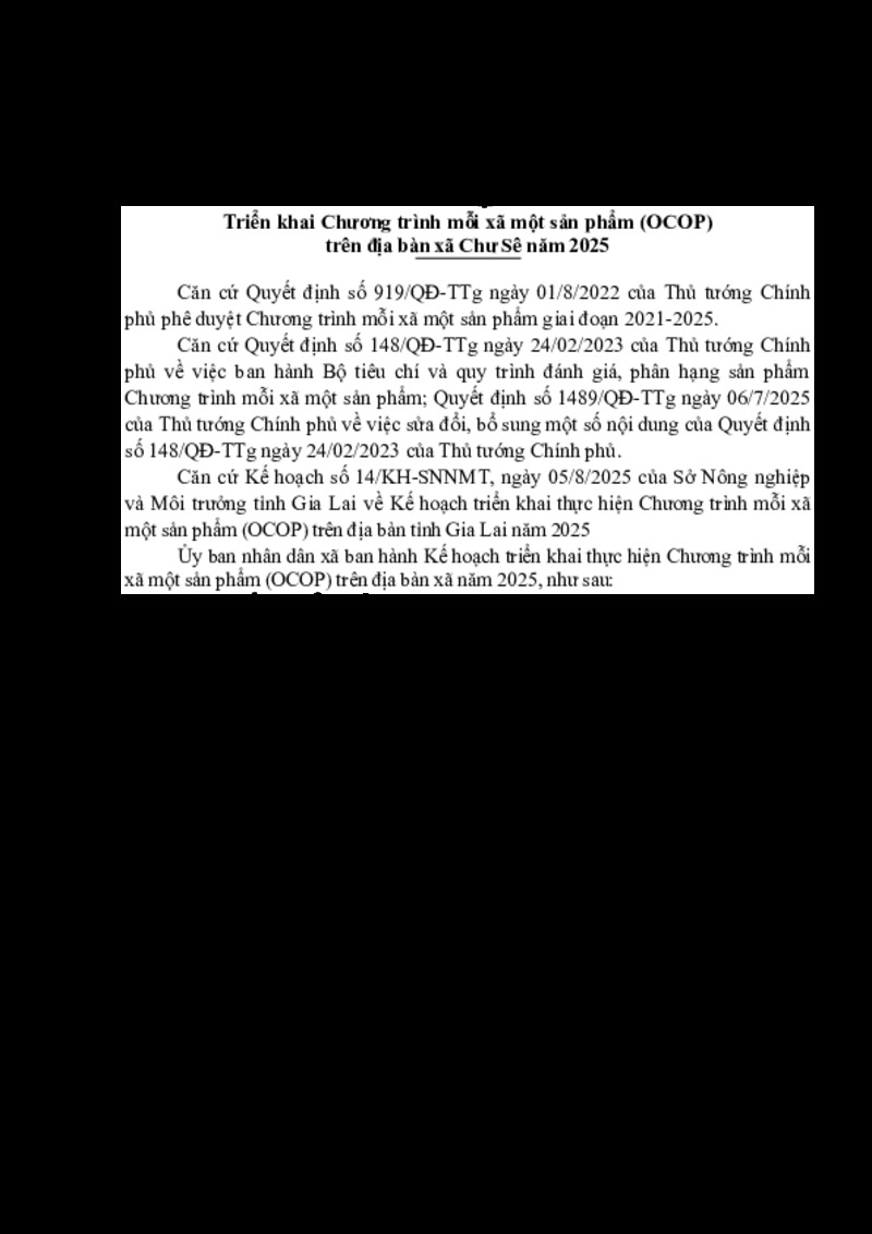 Kế hoạch triển khai chương trình OCOP năm 2025 xã Chư Sê