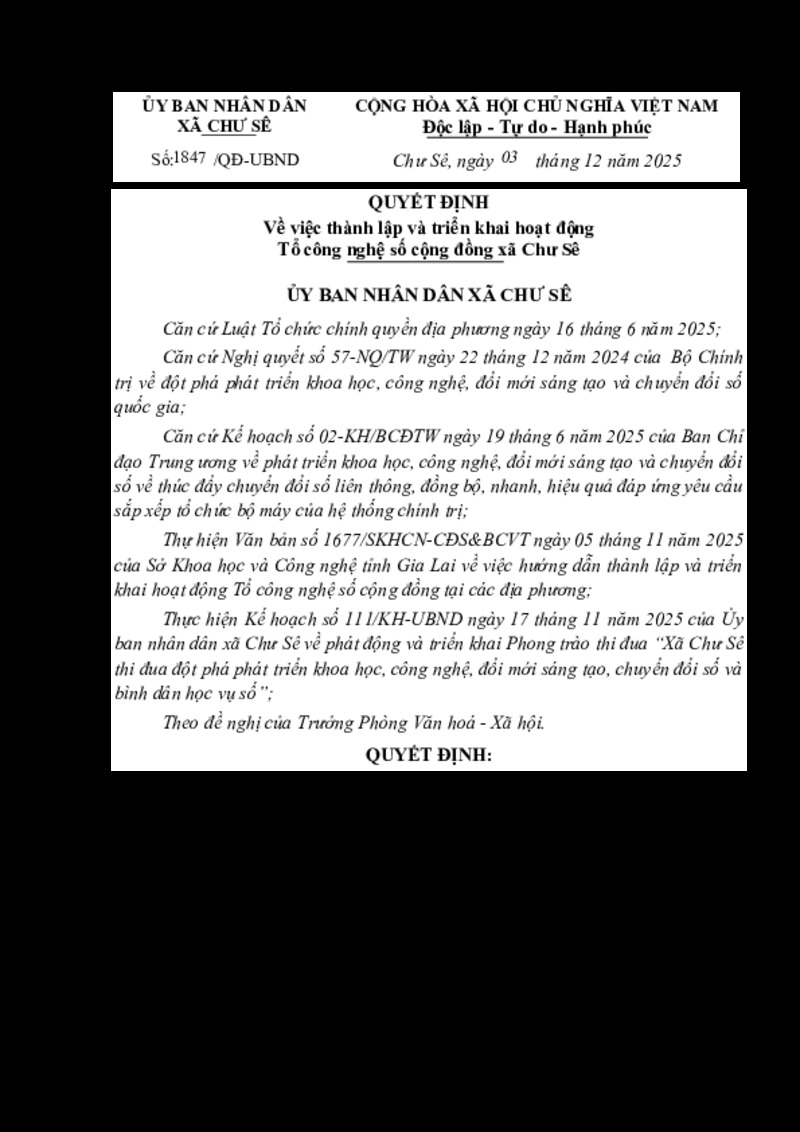 | Tiêu đề văn bản | THÀNH LẬP TỔ CÔNG NGHỆ SỐ CỘNG ĐỒNG | ||