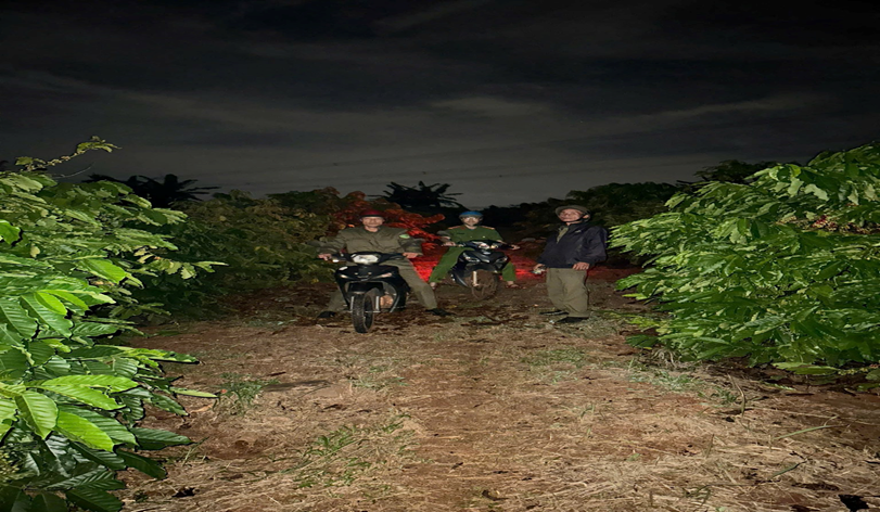 Đội ANTT cơ sở tuần tra tại các khu rẫy đảm bảo tài sản cho nhân dân.