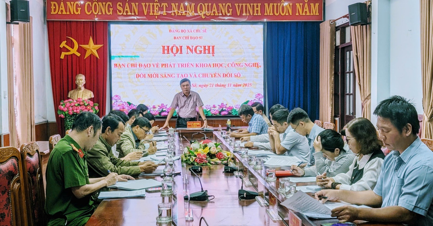 Theo báo cáo, Đảng ủy xã đã chỉ đạo triển khai kế hoạch hành động thực hiện Nghị Quyết số 57 – NQ/TW, ngày 22/12/2024 của Bộ Chính trị về đột phá phát triển khoa học, công nghệ, đổi mới sáng tạo và chuyển đổi số quốc gia; Kế hoạch số 40-KH/ĐU, ngày 24 tháng 10 năm 2025 của Ban Thường vụ Đảng ủy xã tổ chức học tập, quán triệt các văn bản của Trung ương, của Tỉnh ủy và Đảng ủy xã. Qua học tập, quán triệt, đội ngũ cán bộ, đảng viên đã nắm được vị trí, vai trò của khoa học và công nghệ, đổi mới sáng tạo, chuyển đổi số trong phát triển kinh tế - xã hội của đất nước, của tỉnh của xã và những nội dung cơ bản của Nghị quyết số 57-NQ/TW. Từ đó, tạo được sự chuyển biến mạnh mẽ về nhận thức và hành động của các cấp ủy đảng, chính quyền, Mặt trận Tổ quốc, các đoàn thể chính trị - xã hội, cán bộ, đảng viên trong toàn xã đối với khoa học và công nghệ, góp phần đưa Nghị quyết số 57-NQ/TW sớm đi vào cuộc sống. Đảng ủy xã đã ban hành Quyết định số 360-QĐ/ĐU, ngày 17 tháng 9 năm 2025 thành lập Ban Chỉ đạo về phát triển khoa học, công nghệ, đổi mới sáng và chuyên đổi số xã Chư Sê do đồng chí Bí thư Đảng ủy, Chủ tịch HĐND xã Trưởng Ban chỉ đạo; đồng chí Phó Bí thư Đảng ủy, Chủ tịch Uỷ ban nhân dân xã là Phó Trưởng Ban thường trực Ban chỉ đạo; đồng chí Phó Bí thư Thường trực Đảng ủy là Phó Trưởng Ban chỉ đạo và các đồng chí Ủy viên Ban Thường vụ, Ủy viên Ban Chấp hành Đảng bộ và các cơ quan ban ngành là thành viên.