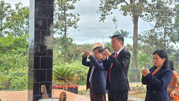 Các đồng chí lãnh đạo xã dâng hương tại đài tưởng niệm xã Ia Blang (cũ). Ảnh TT.