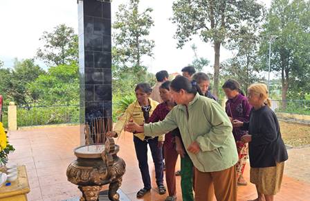 Lãnh đạo xã thắp hương tại các phần mộ liệt sĩ. Ảnh TT.