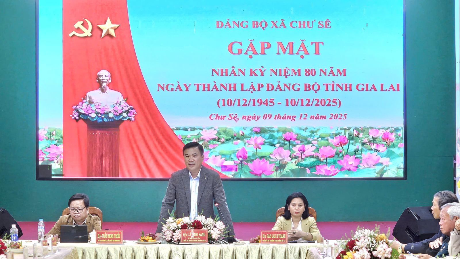 Chiều ngày 9/12/2025, Đảng bộ xã Chư Sê đã long trọng tổ chức buổi gặp mặt toạ đàm nhân kỷ niệm 80 năm ngày thành lập Đảng bộ tỉnh Gia Lai (10/12/1945 - 10/12/2025). Chủ trì buổi gặp mặt có các đồng chí: Lý Anh Sang-Bí thư Đảng ủy, Chủ tịch HĐND xã; Rah Lan H’Thanh-Phó bí thư Thường trực Đảng ủy xã; Trần Minh Triều-Phó bí thư, Chủ tịch UBND xã.