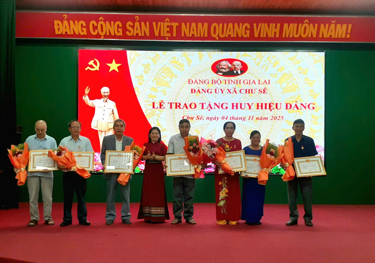 Theo đó, trong đợt 7/11 Đảng bộ xã Chư Sê 01 đảng viên được tặng Huy hiệu 60 năm tuổi Đảng; 02 đảng viên được tăng Huy hiệu 55 năm tuổi Đảng; 05 đảng viên được tặng 45 năm tuổi Đảng; 06 đảng viên được tặng 40 năm tuổi Đảng; 08 đảng viên được tặng 30 năm tuổi Đảng.