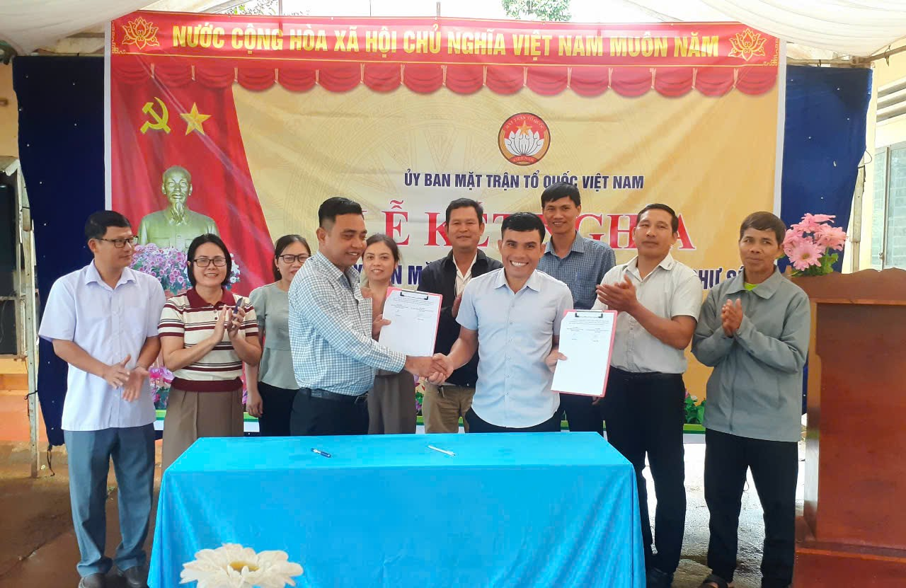 Đại diện UBMTTQVN xã và hệ thống chính trị làng Ngol tham gia ký kết giao ước. Ảnh: HV