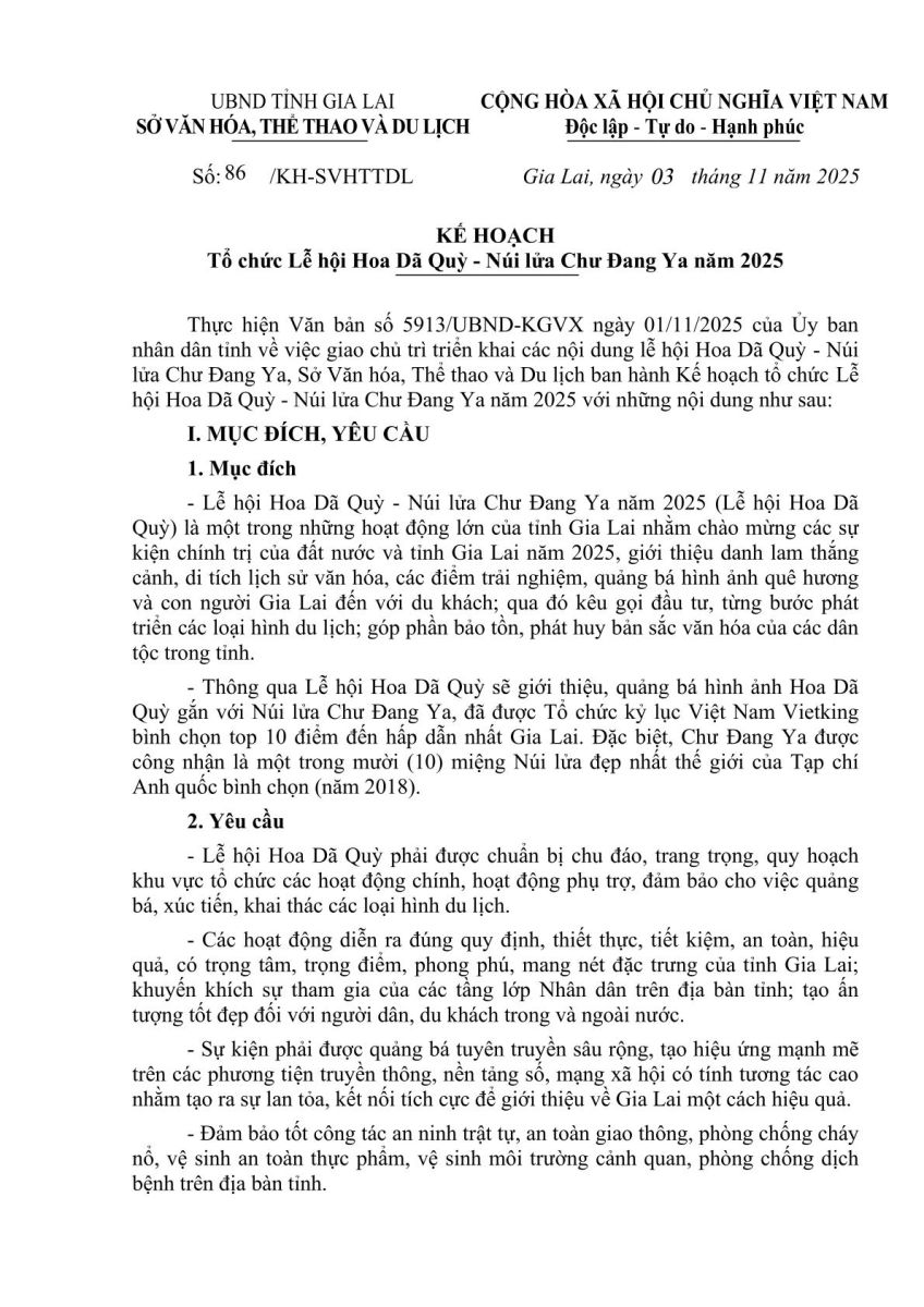 Thứ tư, 12/11/2025 | 10:37 A- A A+ | Kế hoạch tổ chức Lễ hội Hoa Dã Quỳ - Núi lửa Chư Đang Ya năm 2025 Chia sẻ Đọc bài Lưu