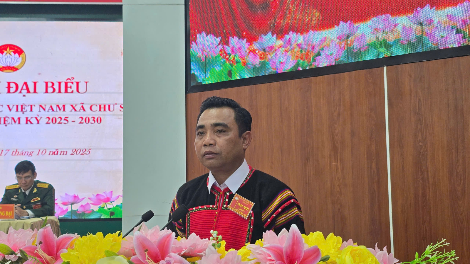 Phát biểu tại Đại hội, Đồng chí Lý Anh Sang - Bí thư Đảng ủy xã Chư Sê đề nghị: “Mặt trận tổ quốc xã tiếp tục phát huy vai trò trung tâm khối đại đoàn kết toàn dân, không ngừng củng cố niềm tin của nhân dân với Đảng và chính quyền. Mặt trận tổ quốc cần tập trung làm tốt công tác tuyên truyền, vận động nhân dân bằng những hình thức gần gũi, dễ hiểu, gắn chặt với đời sống của từng nhóm đối tượng, phát huy vai trò của những người có uy tín, chức sắc, tôn giáo, trí thức, doanh nhân trong việc lan tỏa những giá trị tốt đẹp, tạo đồng thuận và khơi dậy khát vọng vươn lên của quê hương. Cùng với đó, Mặt trận tổ quốc chính là nhân tố trong việc xây dựng khu dân cư văn minh, nghĩa tình, an toàn, phát huy hiệu quả các tổ hòa giải, tổ tự quản ở cơ sở, triển khai có hiệu quả, mô hình “khu dân cư số” để tăng cường quản lý, kết nối và chia sẻ thông tin; đồng thời cần quan tâm bồi dưỡng đội ngũ cán bộ mặt trận vận hành hiệu quả các thông tin chính thống nhằm lan tỏa những thông tin tích cực, kịp thời phản bác, luận điệu sai trái, giữ vững niềm tin trong nhân dân.