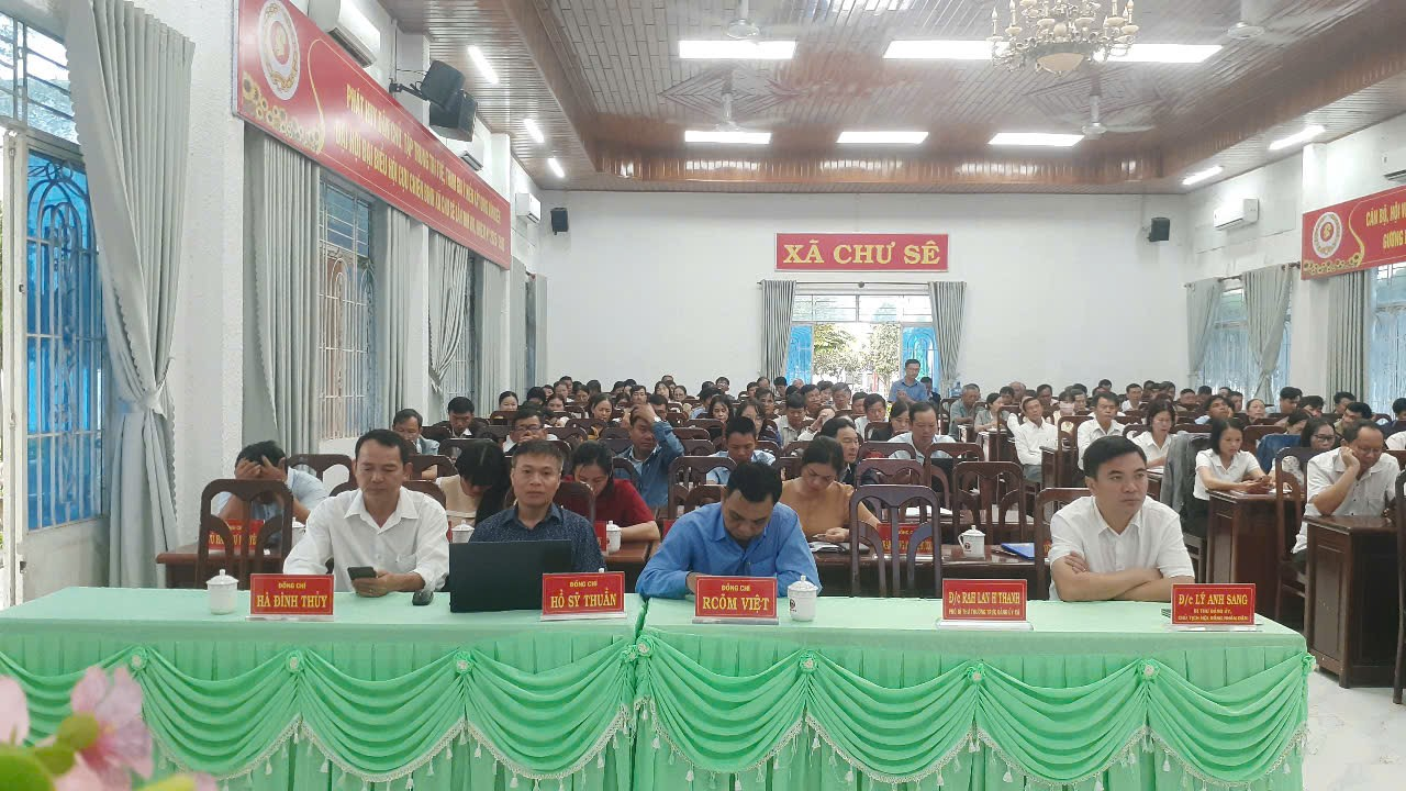 Tại hội trường 17/8, đồng chí Lý Anh Sang-Bí thư Đảng uỷ, Chủ tịch HĐND xã chủ trì tham dự hội nghị tại điểm cầu xã Chư Sê. Cùng dự có các đồng chí Trần Minh Triều-Phó Bí thư, Chủ tịch UBND xã; Rcõm Việt- Chủ tịch UBMTTQ VN xã, Các đồng chí Ủy viên Ban Chấp hành Đảng bộ xã; lãnh đạo các cơ quan chuyên trách tham mưu, giúp việc Đảng ủy xã; Bí thư, phó Bí thư các tổ chức cơ sở Đảng trực thuộc Đảng bộ xã; Các đồng chí được giao nhiệm vụ chuyển đổi số tại các Tổ chức cơ sở Đảng; Ủy viên Ủy ban kiểm tra Đảng ủy xã; Chuyên viên Ban xây dựng Đảng phụ trách chuyển đổi số.