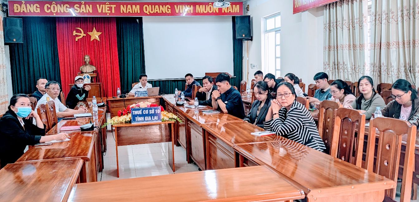 Dự hội nghị tại điểm cầu Thuế cơ sở số 10, đồng chí Nguyễn Đình Hoài – Trưởng Thuế Cơ sở 10 (tỉnh Gia Lai); cán bộ công chức Thuế và hơn 50 hộ kinh doanh trên địa bàn xã Chư Sê.