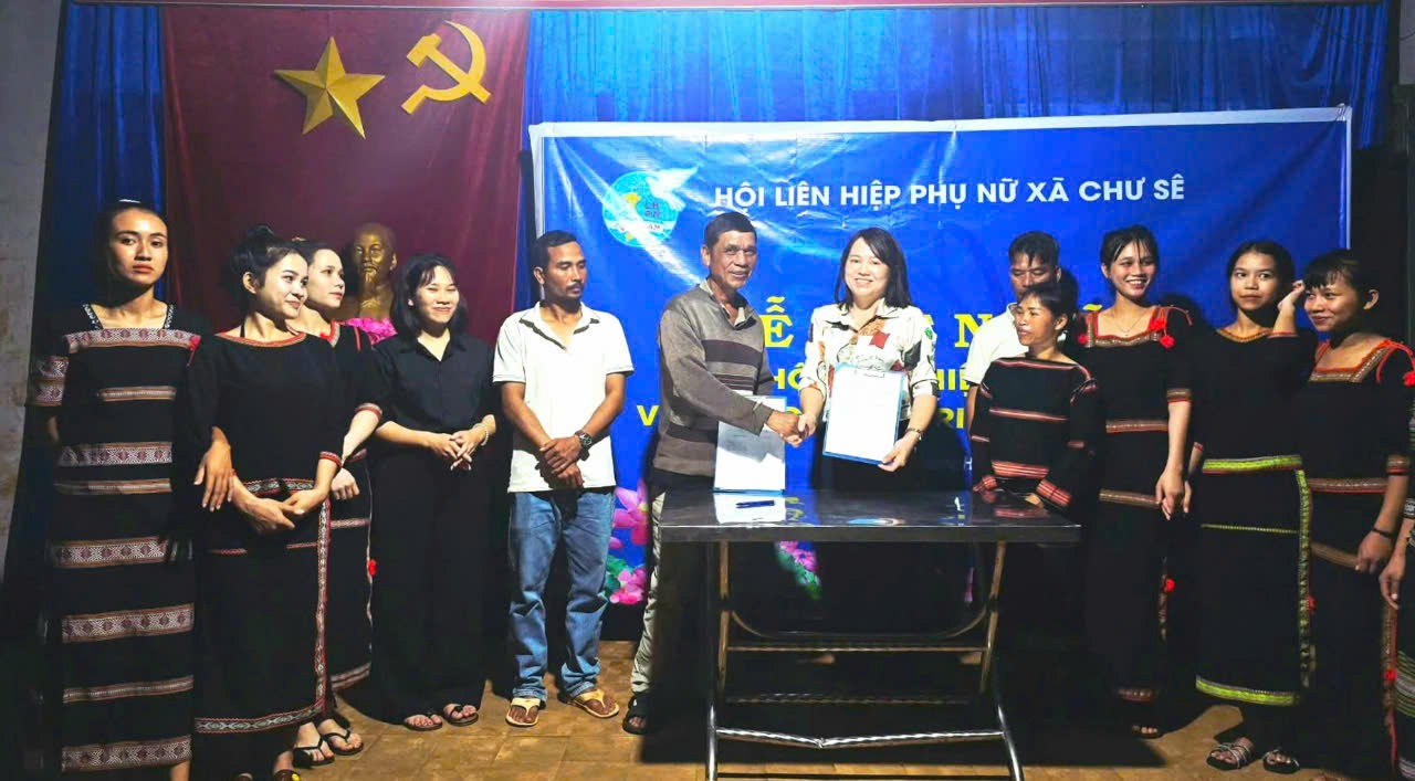 Hội LHPN xã ký kết nội dung phối hợp với Nhân dânlàng Hăng Ring. Ảnh: Mỹ Đức