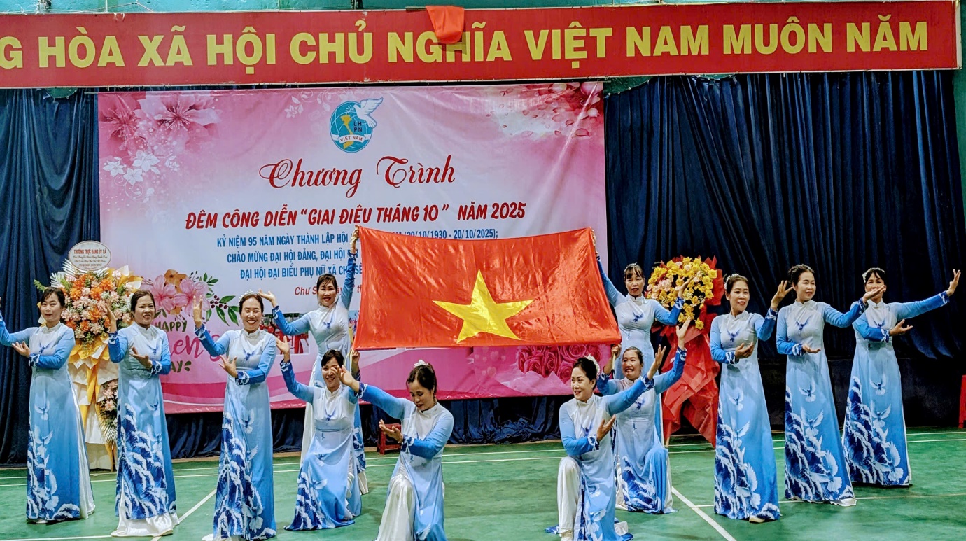 Tối 17-10, tại nhà thi đấu đa năng xã Chư Sê, Hội LHPN xã Chư Sê tổ chức đêm công diễn “Giai điệu tháng 10” năm 2025, nhằm kỷ niệm 95 năm ngày thành lập Hội LHPN Việt Nam (20/10/1930 -20/10/2025), chào mừng Đại hội Đảng, Đại hội Đại biểu MTTQ VN xã, Đại hội Đại biểu Phụ nữ xã Chư Sê (lần thứ I ( nhiệm kỳ 2025-2030).