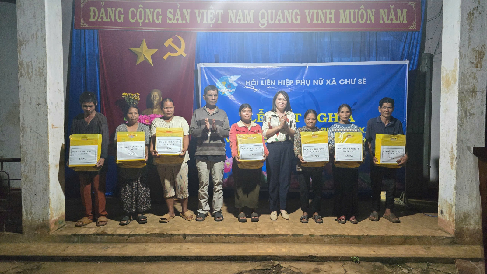 Dịp này, Hội LHPN xã Chư Sê đã trao tặng 7 phần quà cho 7 hộ gia đình có hoàn cảnh kinh tế khó khăn tại thôn Hăng Ring.