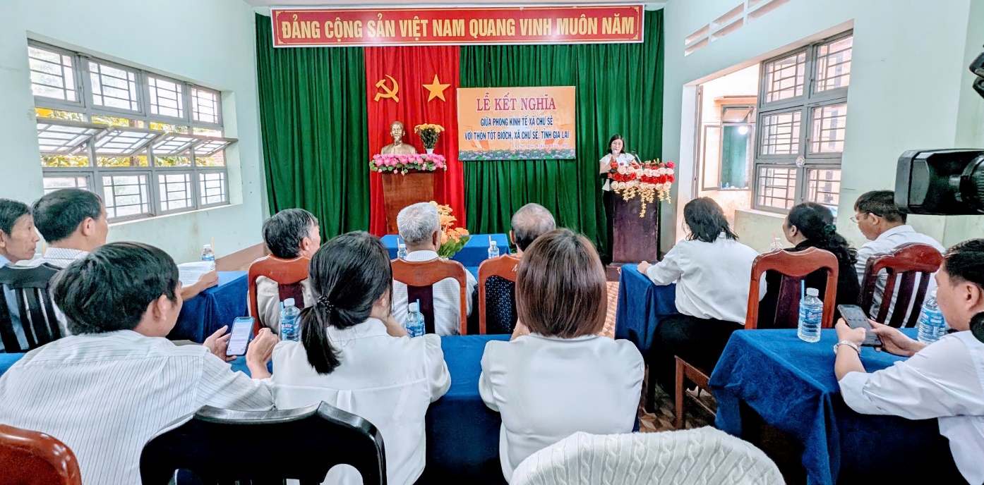Dự lễ kết nghĩa có đồng chí Phạm Thị Thùy Trang – PBT Chi bộ, Phó Trưởng phòng Kinh tế xã Chư Sê; đồng chí Nguyễn Song Hào – Bí thư Chi bộ thôn Tốt Biớch. Cùng dự có công chức Phòng Kinh tế xã và đông đảo bà con nhân dân thôn Tốt Biớch.