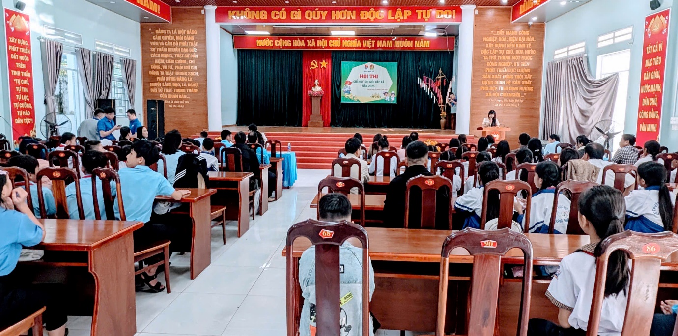 Hội thi Chỉ huy đội giỏi cấp xã năm 2025 được chia làm 2 khối là khối Tiểu học và khối Trung học cơ sở. Mỗi thí sinh sẽ tham gia 03 phần thi gồm thi kiến thức trắc nghiệm, thi kỹ năng thực hành và thi năng khiếu.